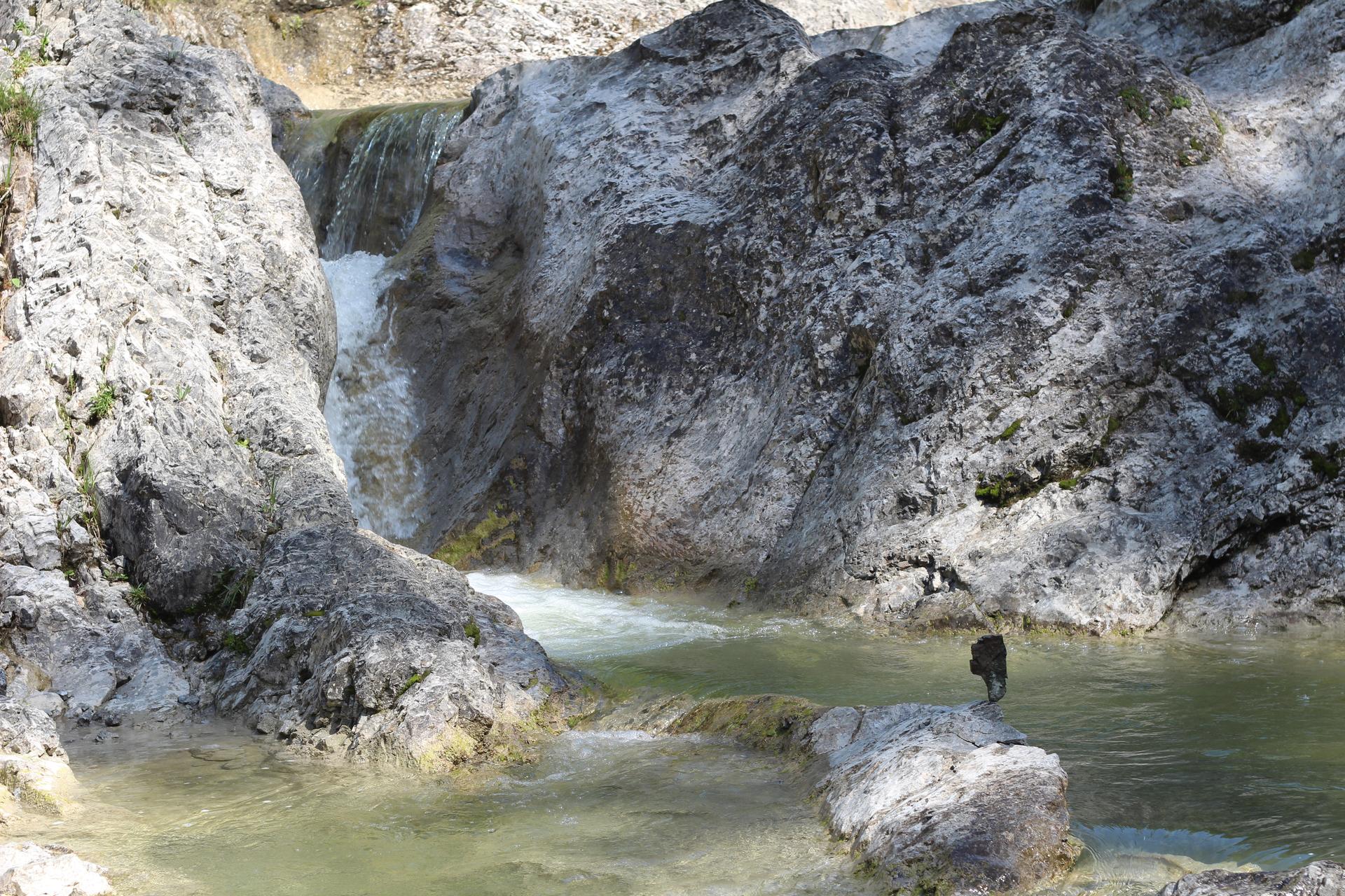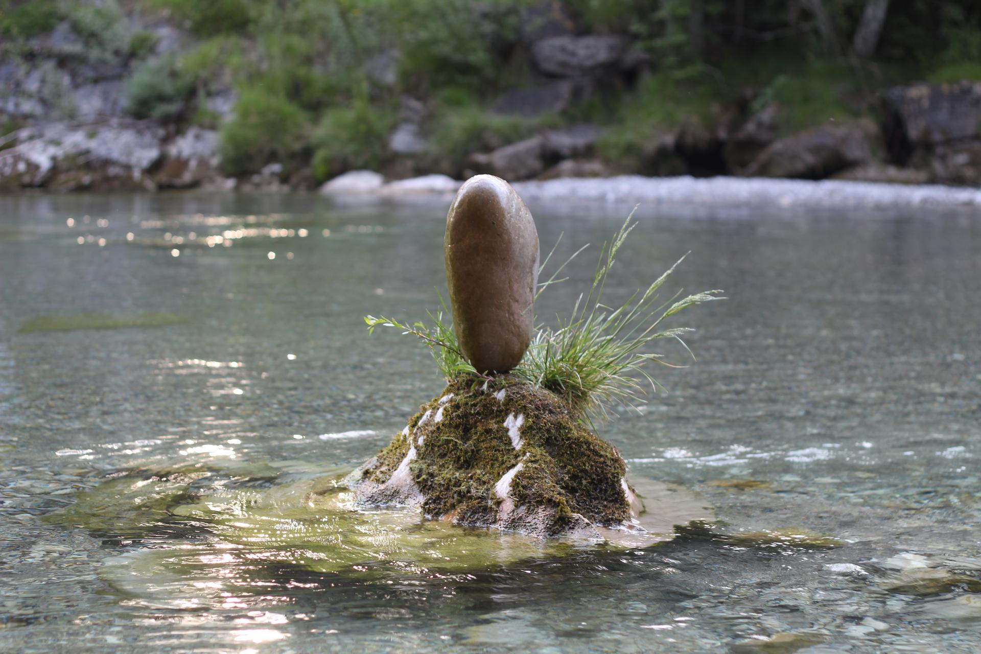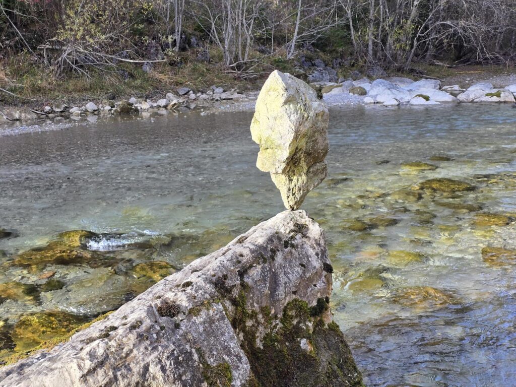 November 2025: Wieder Kreuth, durch das enge Gebirgstal fließt die Weissach von den Blaubergen bis zum Tegernsee; mittendrin im kalten Wasser steht derselbe Mann im T-shirt, die Hosen hochgekrempelt. In seinen bloßen Händen hält er einen unförmigen Steinbrocken, den er aus dem Wasser gehoben hat, vielleicht 30 Kilogramm schwer. Er trägt ihn zu einem Felsen, setzt in dort ab, stellt ihn auf seine Spitze, richtet ihn aus, und erneut: lässt los. –