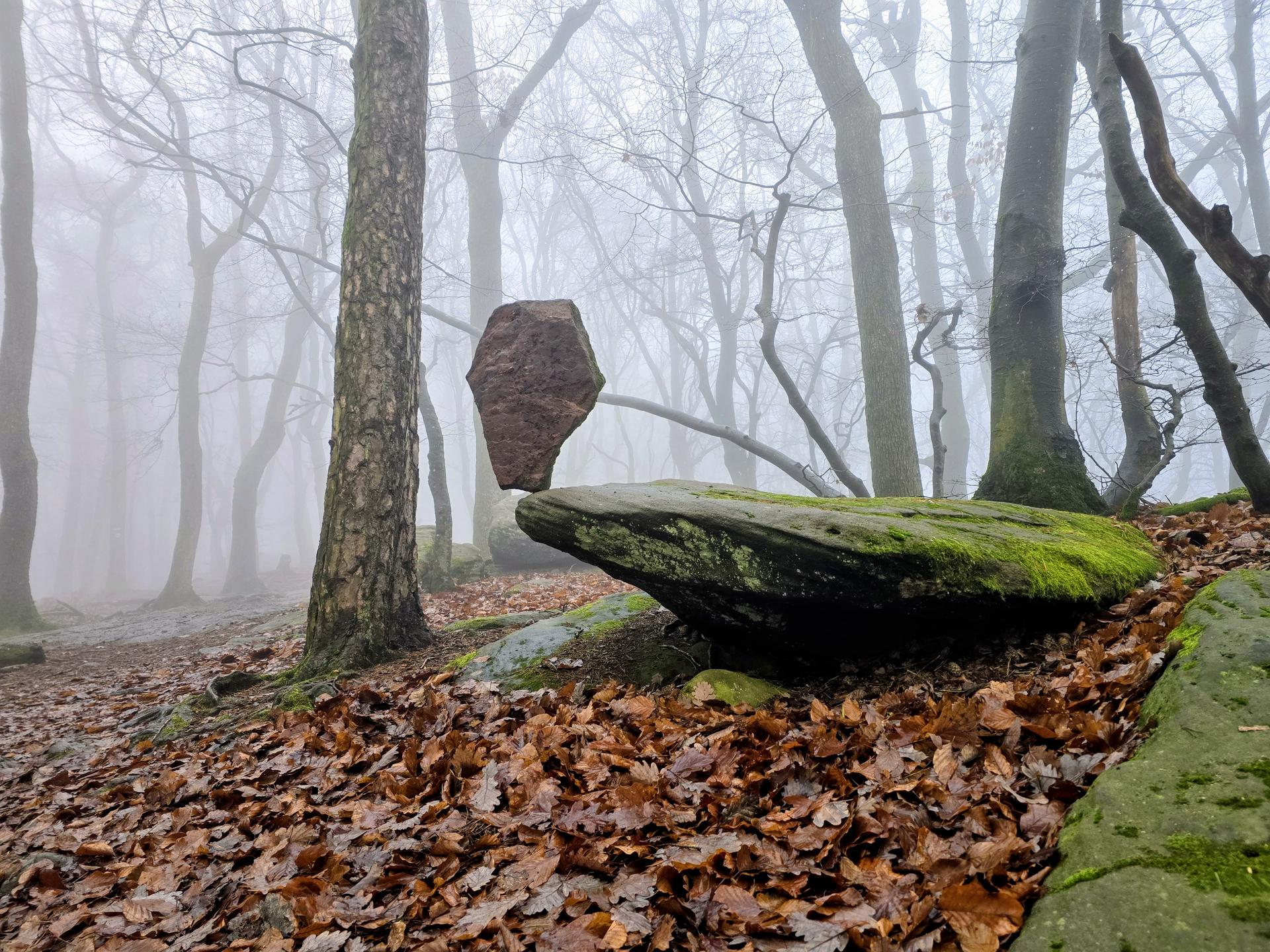 Der Stein steht. Völlig frei. Ohne Hilfsmittel. Unglaublich. –